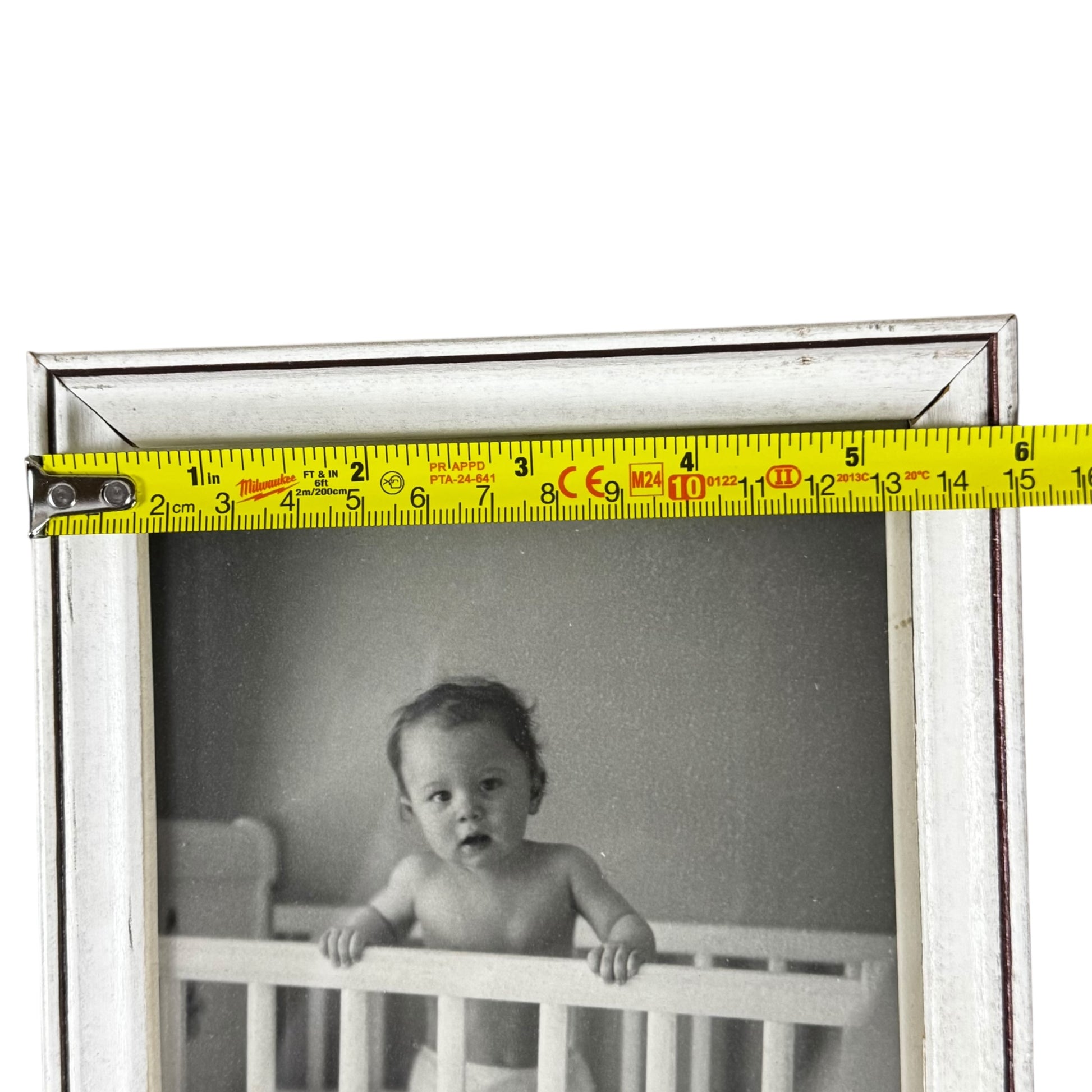 Antique Wooden Framed 1940s Infant in Crib Photograph – Vintage Nursery Portrait Art 8x10