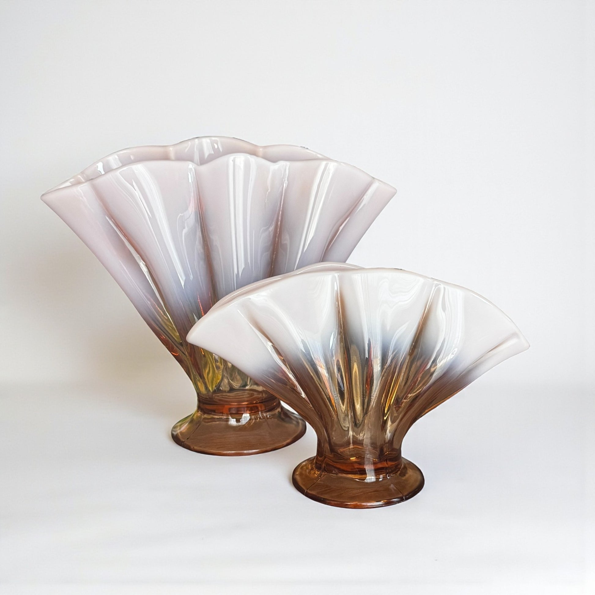 Fenton Art Glass Vintage Set of Amber Cameo Opalescent Stretch Vases